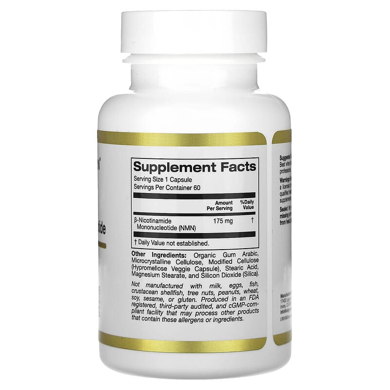 California Gold Nutrition® NMN (Nicotinamide Mononucleotide) features β-nicotinamide mononucleotide (NMN), a NAD+ precursor to help support many functions throughout the body.*